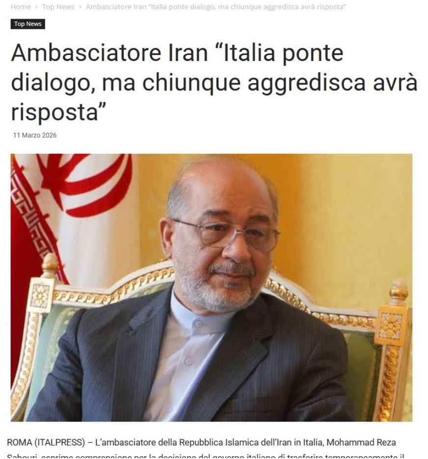 Attribuiamo grande valore alle relazioni con l’Italia e auspichiamo che tutte le parti agiscano con responsabilità e moderazione, evitando azioni che possano alimentare un’ulteriore escalation delle tensioni. È nell’interesse di tutti preservare la stabilità regionale e internazionale. Naturalmente, qualsiasi partecipazione a un’aggressione contro l’Iran comporterebbe una risposta adeguata.