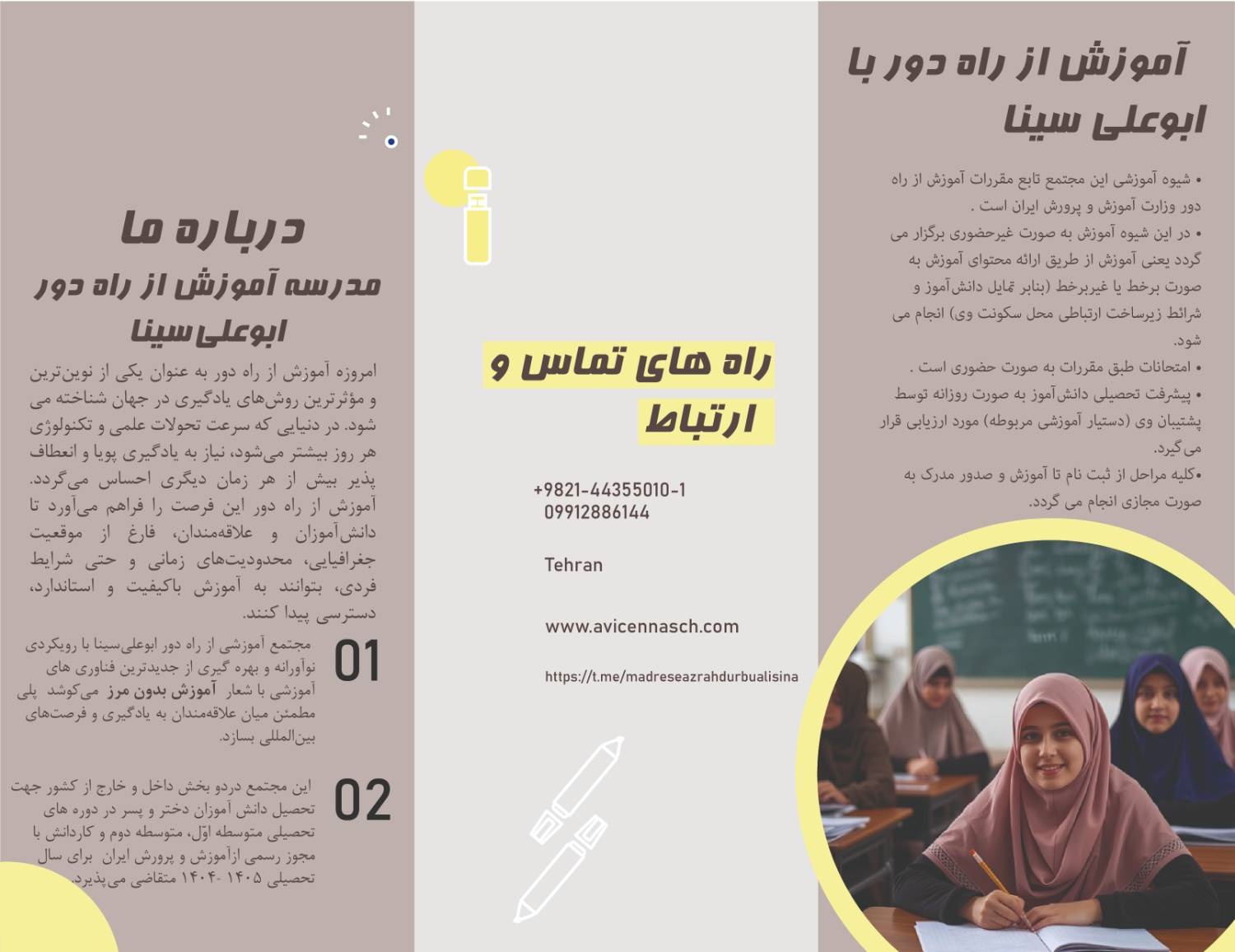 در راستای بهره مندی فرزندان ایرانیان مقیم خارج از کشور از آموزش از راه دور، مدرسه آموزش از راه دور خارج از کشور "ابوعلی سینا" مورد تایید وزارت آموزش و پرورش جمهوری اسلامی ایران جهت استفاده این عزیزان معرفی می‌گردد.